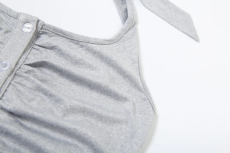 Folds 2-Piece Set Women Lace-Up Halter Backless Single-Breasted Tank Tops+Shorts Summer Trend Street Matching Suit