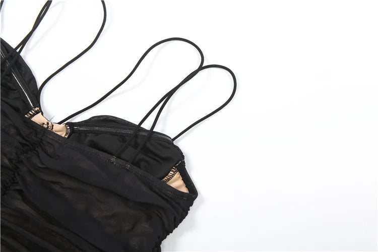 Folds Maxi Dress Women Low-Neck Peach Butt Sleeveless Patchwork Mesh Elasticity Sexy Slim Midnight Prom Party Vestidos