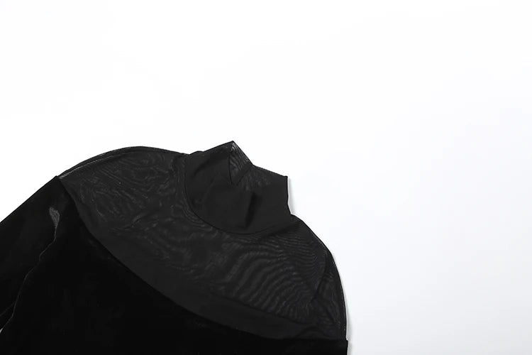 Full Sleeve Turtleneck Mesh Patchwork Long Dress Woman Elegant Velvet Slim High Waist Evening Prom Party Elegant Bodycon