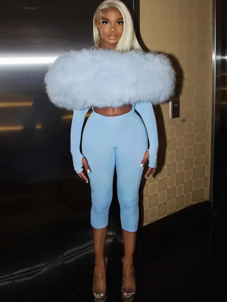 Furry Slash Neck Jumpsuit Woman Sexy Hollow Patchwork Full Sleeve Backless Skinny Hottie Street Autumn New Overalls