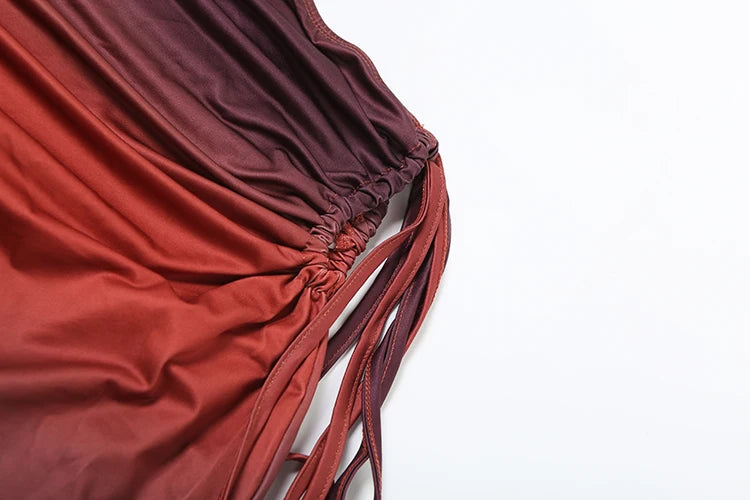 Gradient Sexy 2 Piece Set Women Y2K Plait Heart Shape Camisole+Shirring Hollow Skirts Summer Beach Vacation Clubwear
