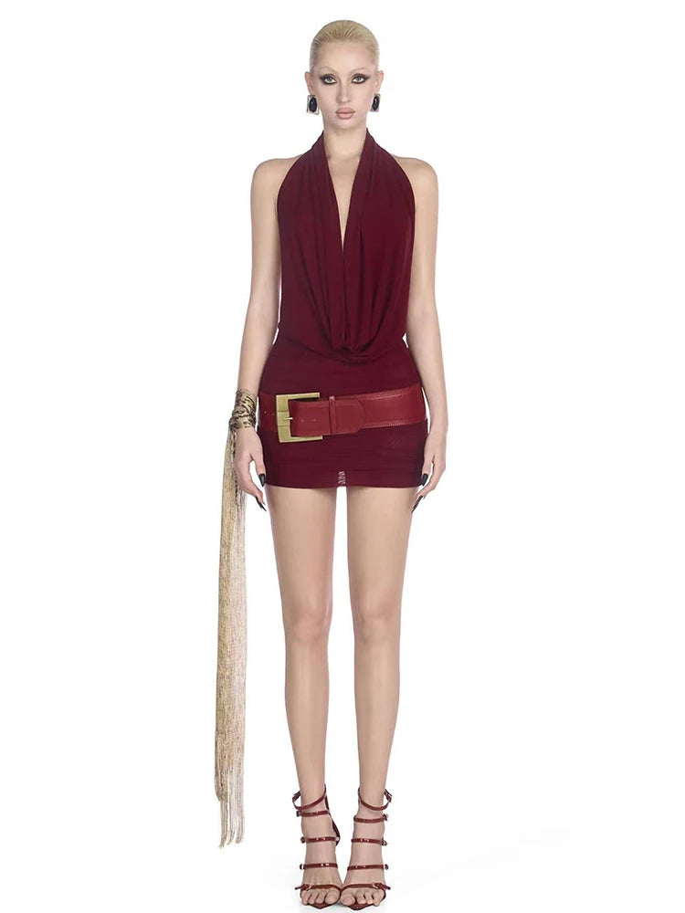 Halter Backless Dress Women Sexy Swing Collar Sleeveless Skinny Folds Sexy Midnight Summer Trend Hottie Thin Bodycon