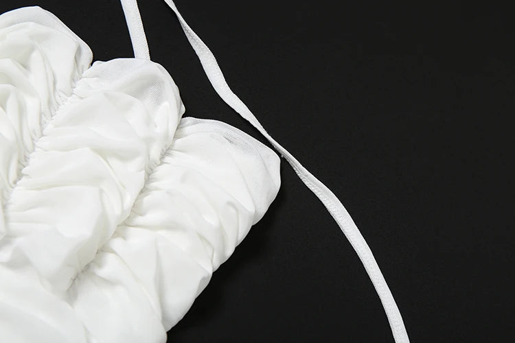Halter Bandage Dress Women Patchwork Mesh Hem High Split Folds Backless Sleeveless Elegant Banquet Party Vestidos