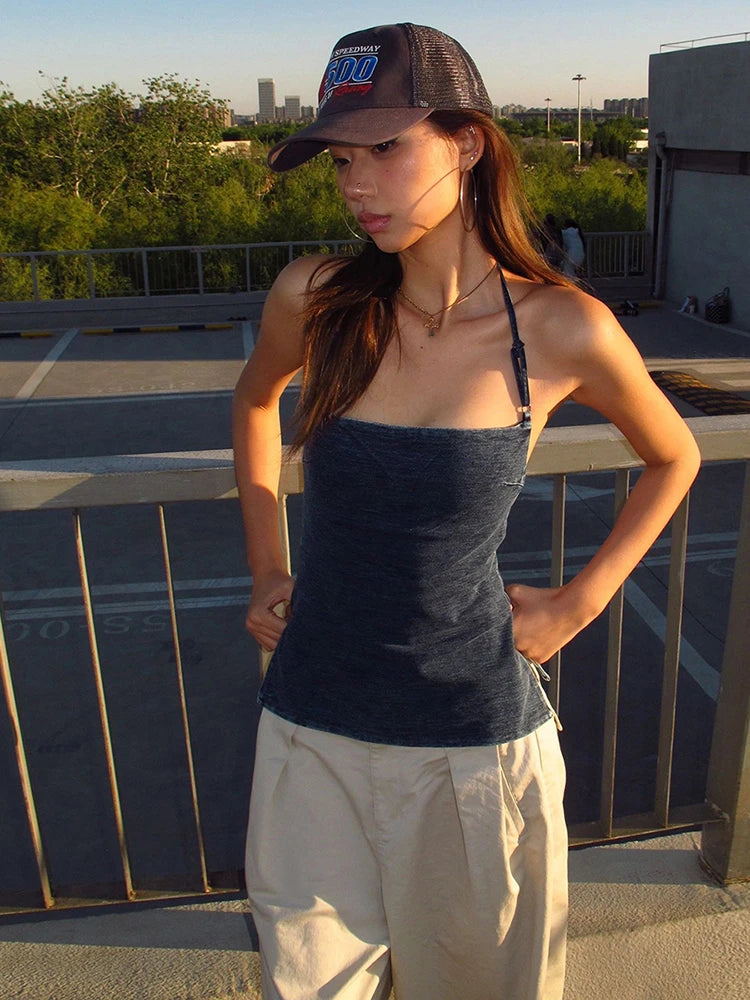 High Street StyleTank Tops Women Halter Sexy BandageBackless Side Splits Skinny Tops Hottie Hipster Classic Outfits