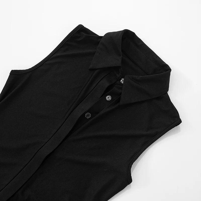 Hipster Women Summer 2 Piece Set Single-Breasted Bodysuit+Peach Hip Side Tassel Skirts Matching Streetwear Outfits