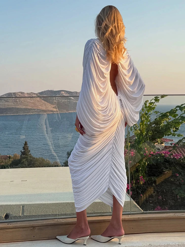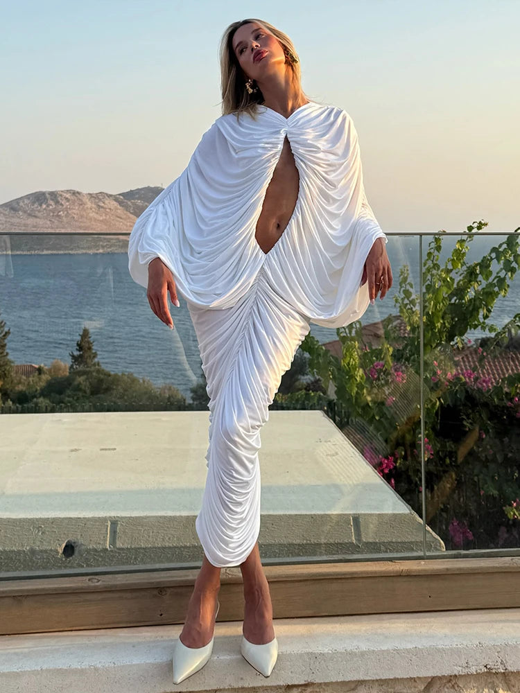 Hollow Ruched Patchwork Dress Peach Buttocks Bat Sleeves Chic Hipster Autumn Hipster Clubwear Skinny Stretch Vestidos