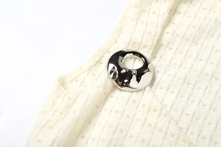Hollow Scarf+Vests Women Low-Neck See Through Sleeveless Backless Knit Skinny Metal Trim Summer Elegant Tank Tops