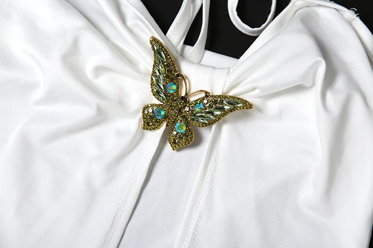 Hollow Split Women Dress Summer Trend Sexy Y2K Metal Butterflies Sleeveless Backless Bandage Whip Split Maxi Bodycon