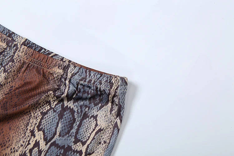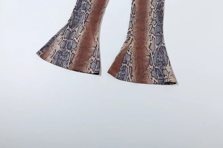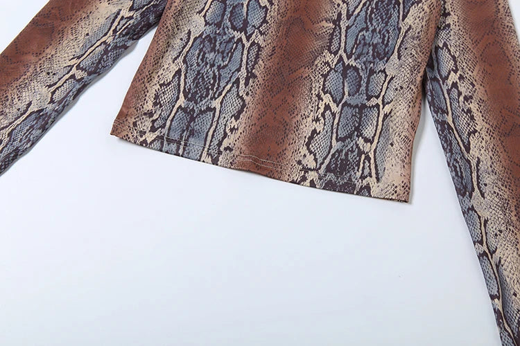 Hot Girls Serpentine Print 2Piece Set Woman o-Neck Full Sleeve Tops+Skinny Peach Hip Long Pants Street Sexy Fashion Suits