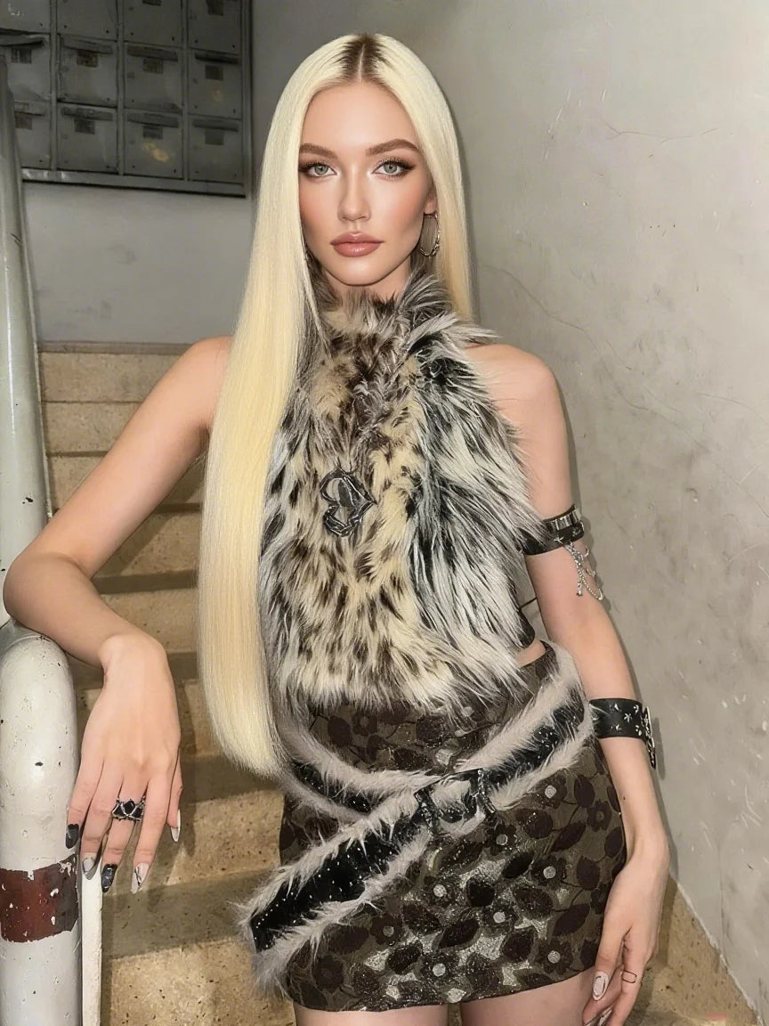 Hottie Leopard Tassel Tank Tops Women Sexy Furry Patchwork Halter Sleeveless Stretch Coquette Midnight Party Clubwear