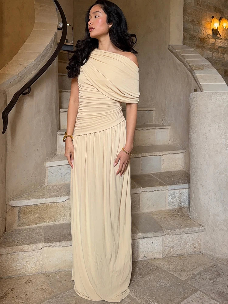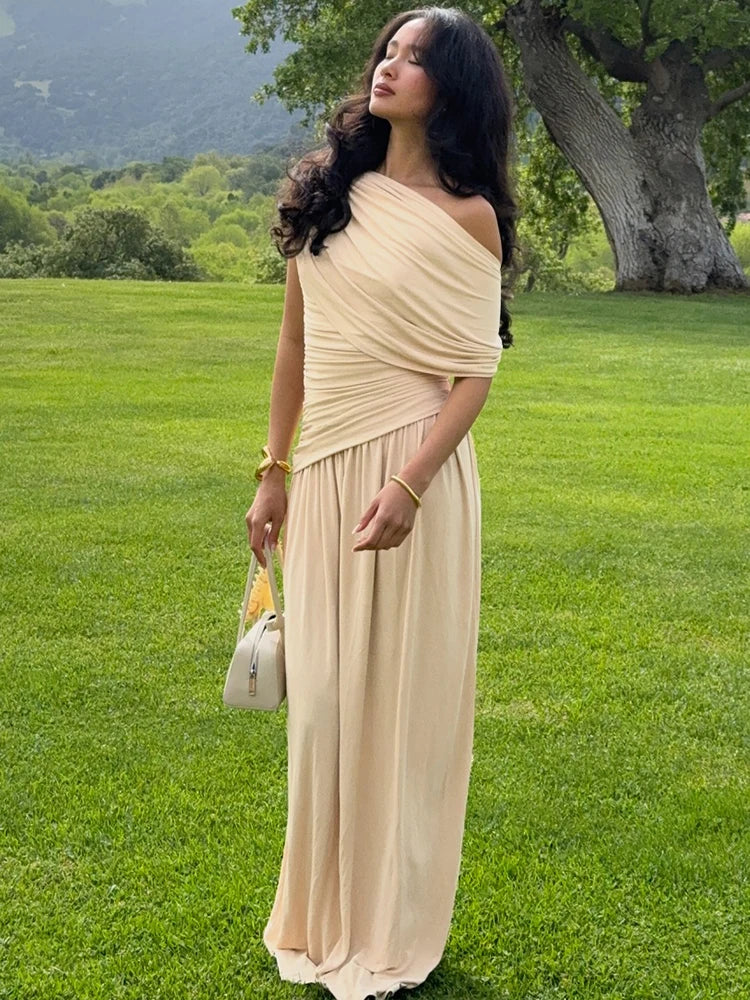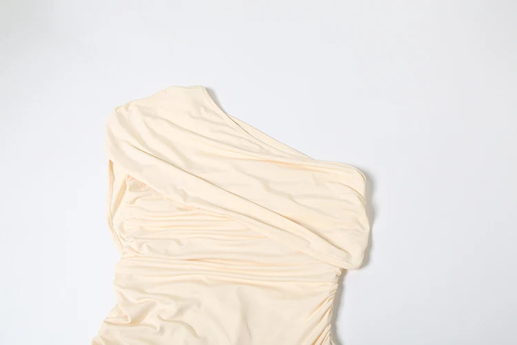 Inclined Shoulder Dress Women Y2K Sexy Irregular Patchwork Ruched Stretch Summer Elegant Classic Vestidos Clubwear