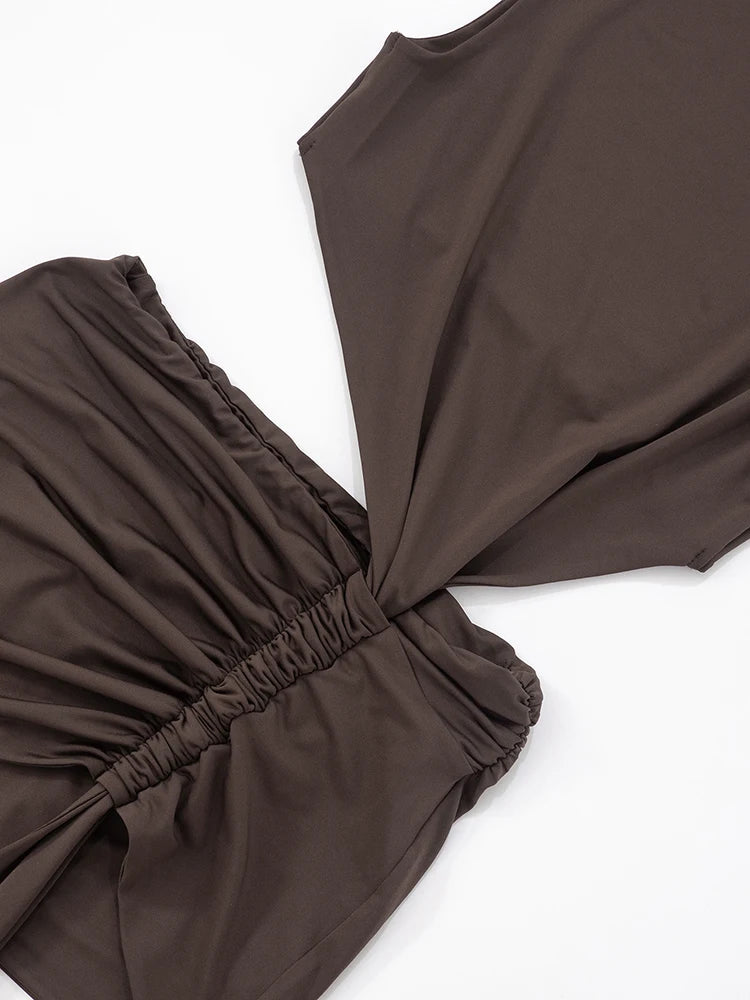 Irregular Hollow Dress Women o-Neck Sleeveless Waistless Skinny Ruched Tassel Midnight Club Party Sexy Mini Bodycon