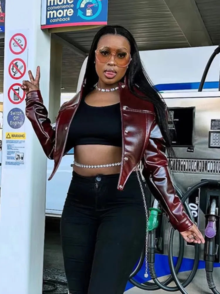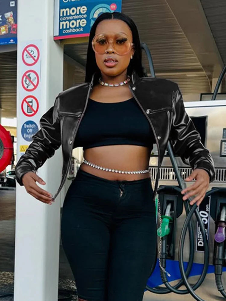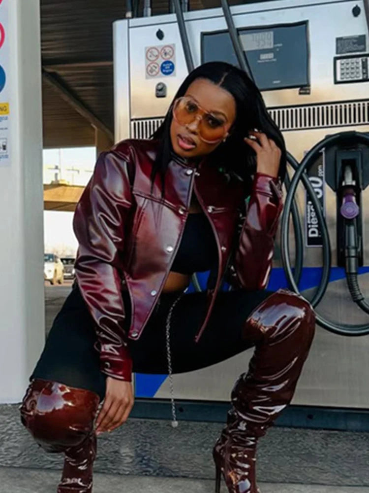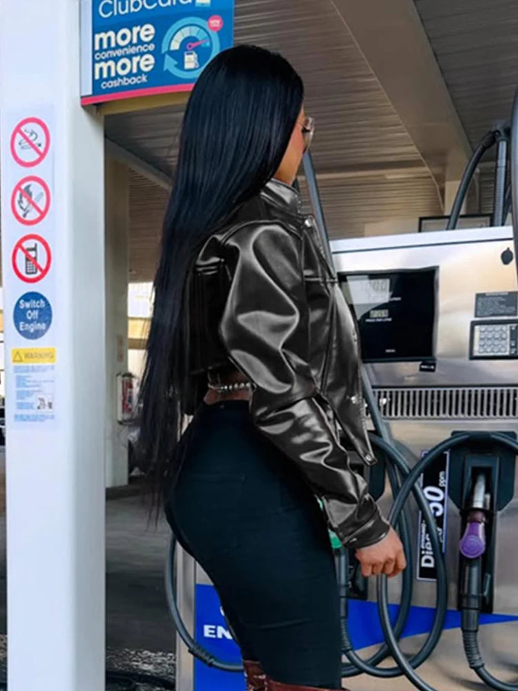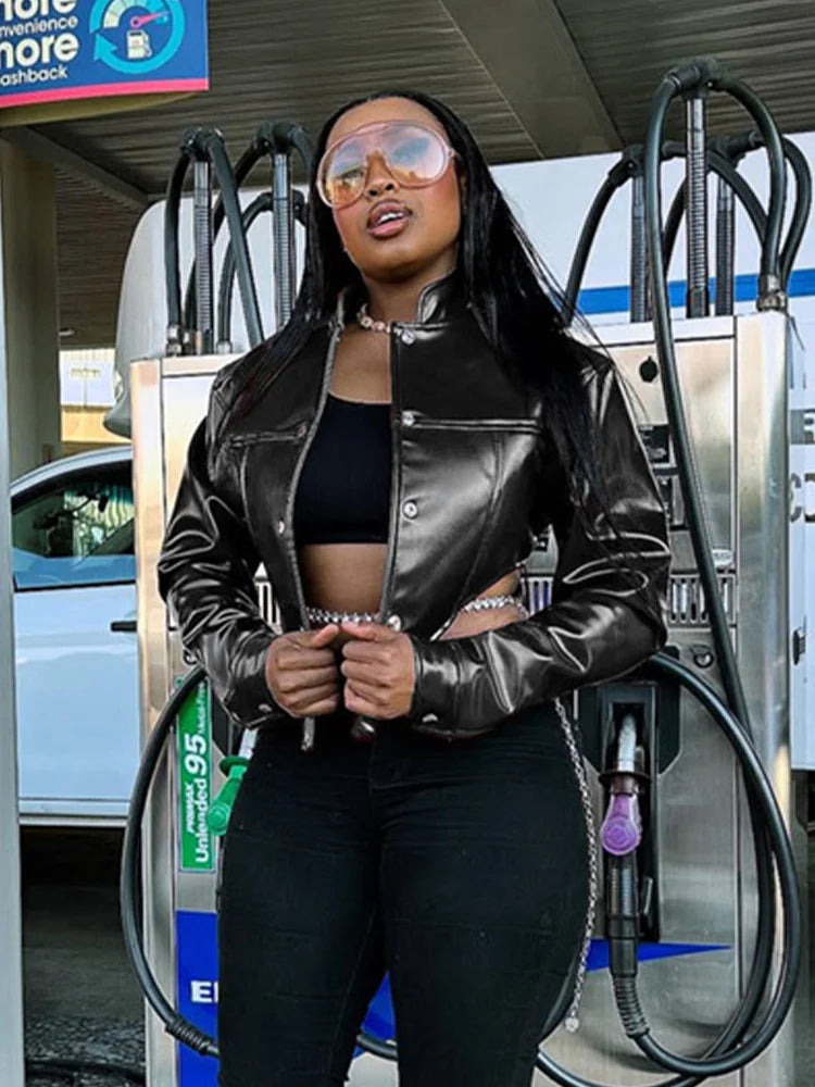 Irregular PU Jacket Women Sexy Stand Collar Magnetic Snap Button Chic Waistless Street Clubwear Hipster Autumn Coat