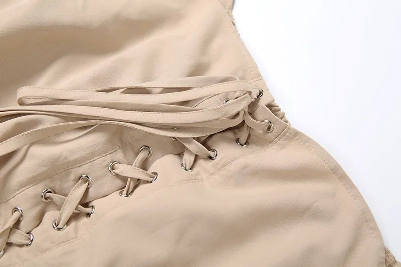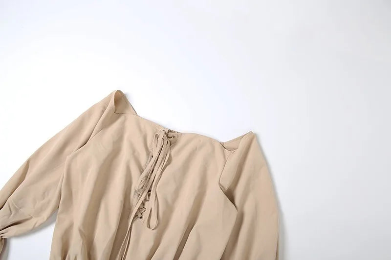 Lace Up Off Shoulder Long Sleeve Mini Dress Boho Loose Dresses for Woman Clothes Fall 2025