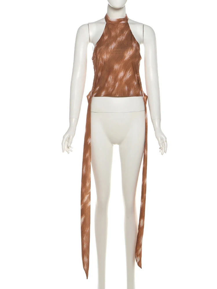 Lace-Up Tassel Tank Tops Women Y2K O-Neck Gradient Print Skinny Street Hip Hop Style Hottie Sexy Midnight Street Vest