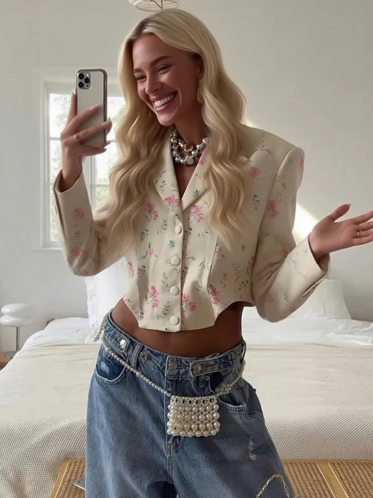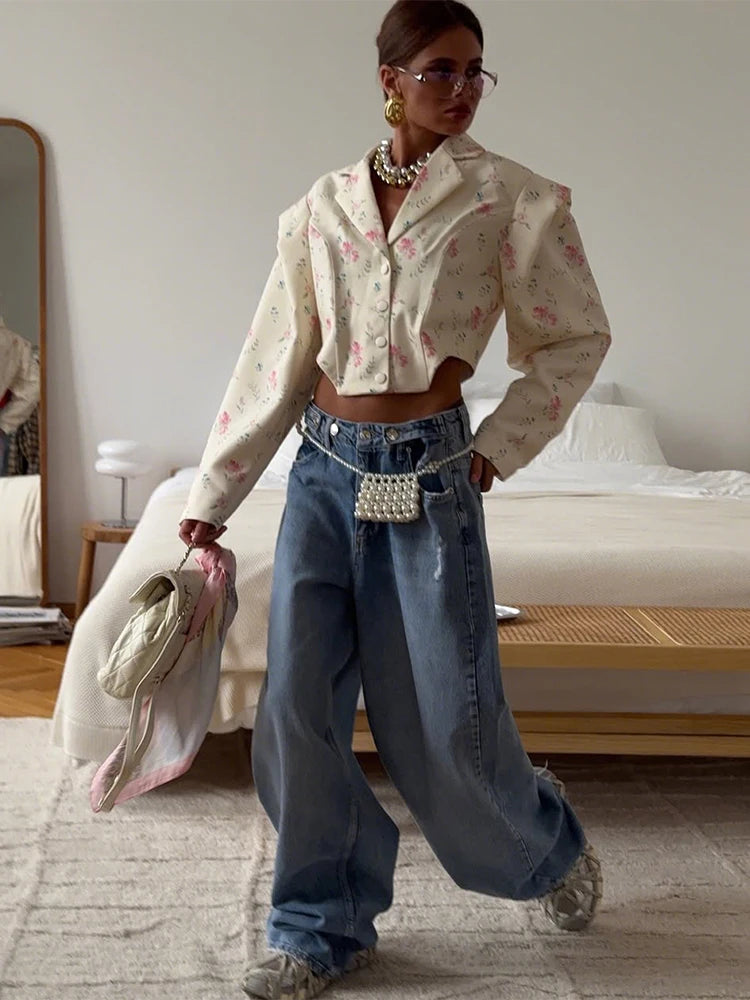 Lapel Crop Shirt Women Autumn Shoulder Padded Single Breasted Simple Wild Sweet Office Streetwear Irregular Jacket