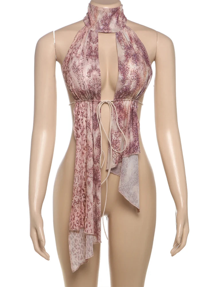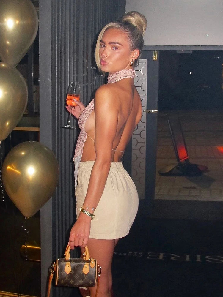 Leopard Print Backless Camisole Women Y2K Sexy Shirring Ruched Halter Sleeveless Elegant Party Summer Trend Slim Vest
