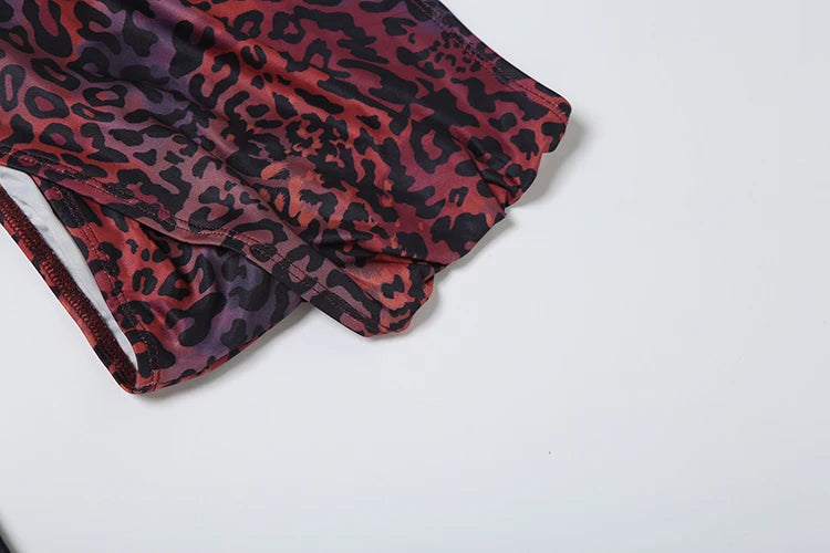 Leopard Print Dress Women Y2K Waistless One Shoulder Sleeveless Ruffles Sexy Beach Party Vacation Chic Club Vestidos