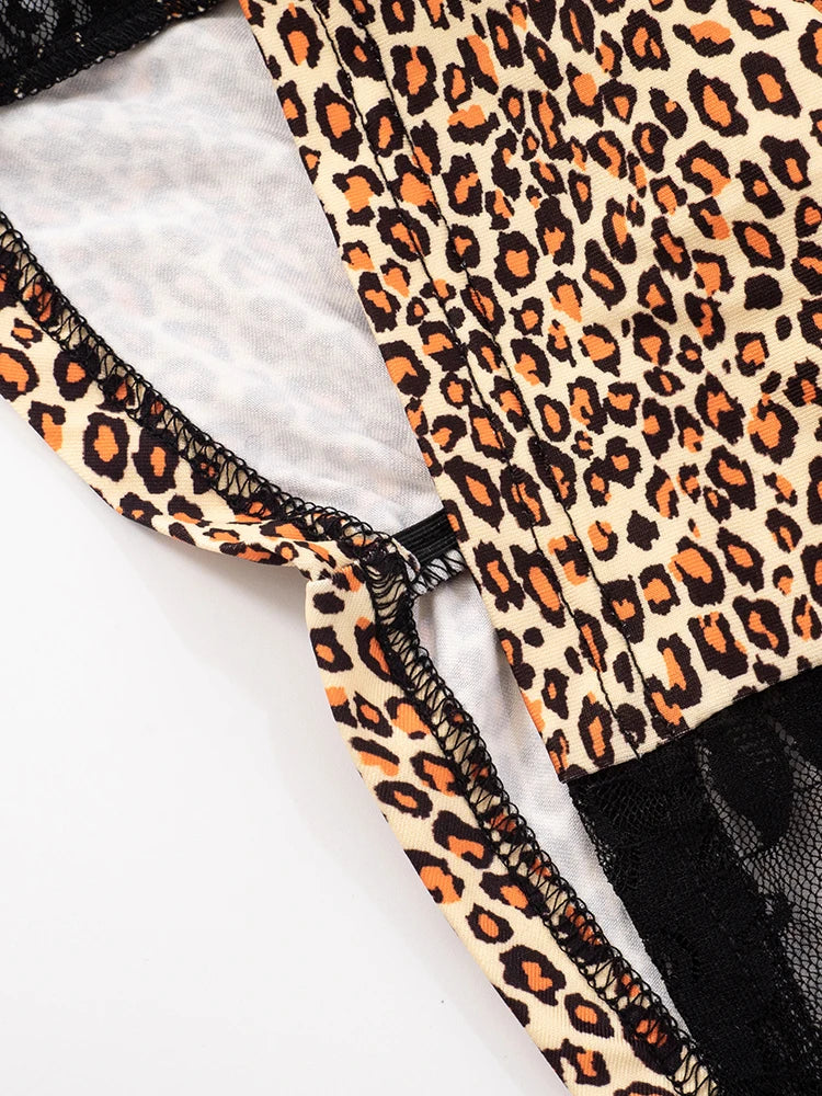 Leopard Print Mini Dress Women Lace Patchwork Halter Sexy Deep V-Neck Backless Midnight Club Party Coquette Outfits