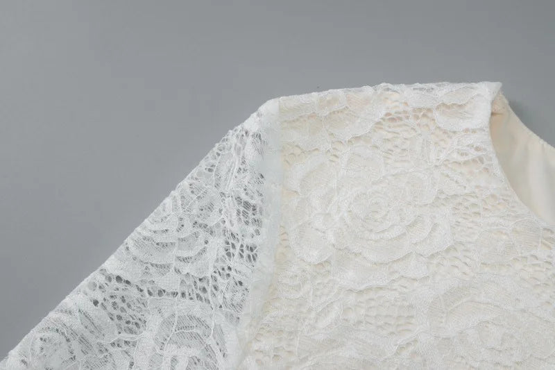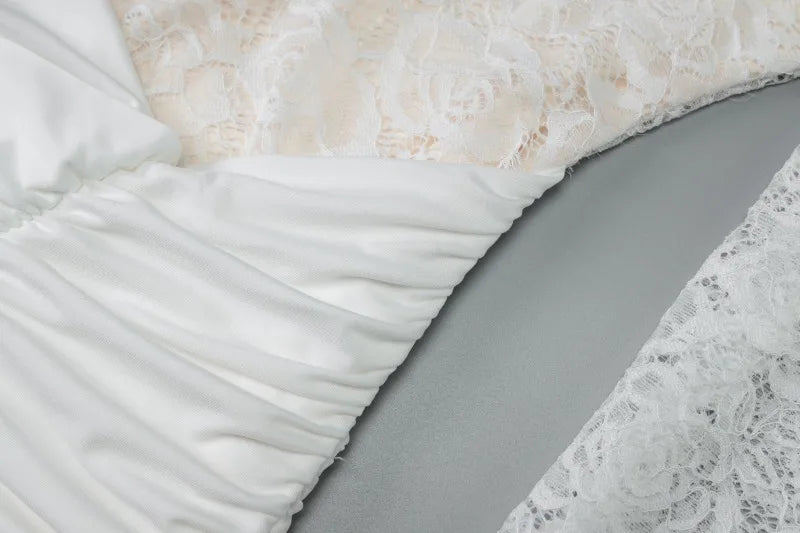 Long Sleeve Draped Mini Dress Lace Patchwork White Sheath Dresses Elegance Woman Clothing Fall 2025