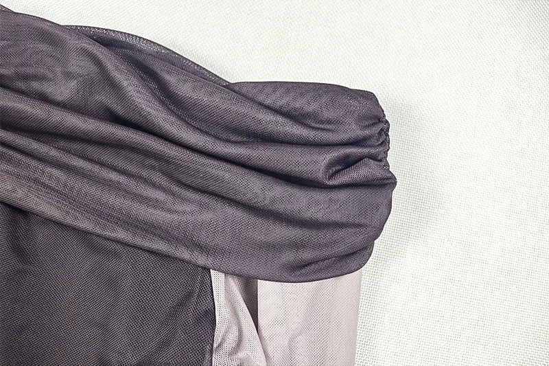 Mesh Gradient Maxi Dress Women Ruched Slash Neck Backless Full Sleeve Vacation Street Fashion Elegant Skinny Vestidos