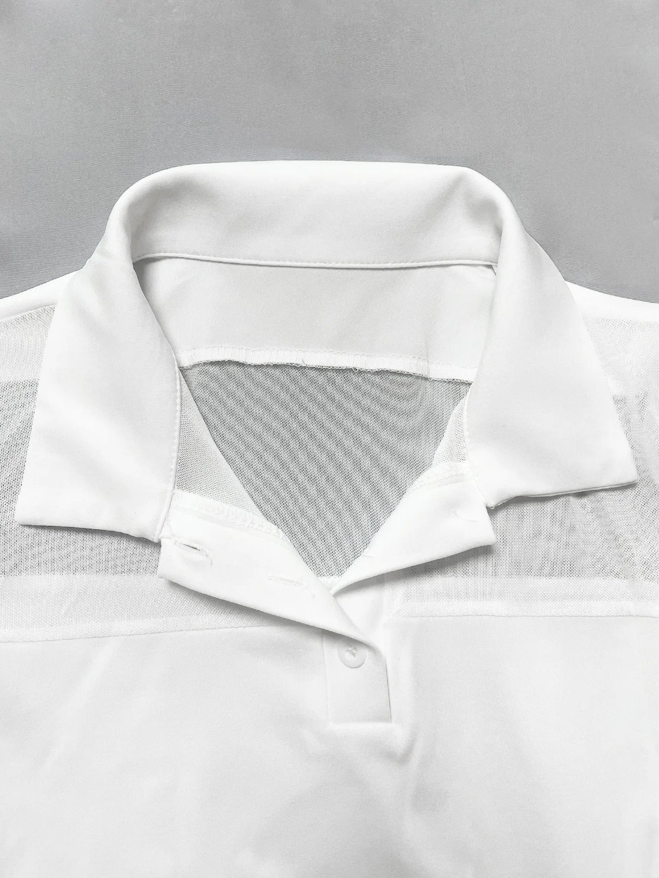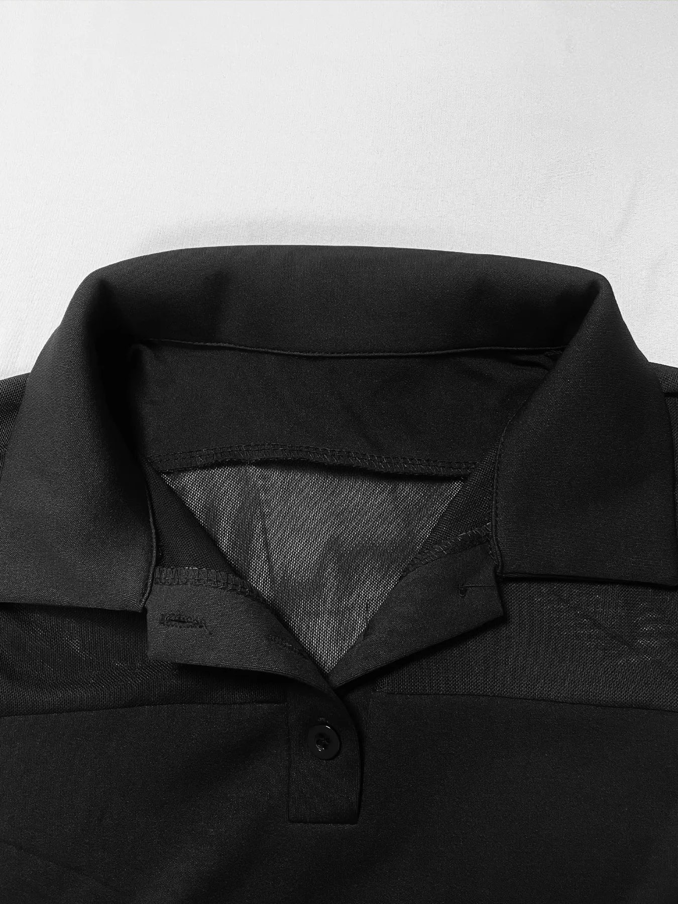 Mesh Patchwork Dress Women Polo-Neck Short Sleeve Skinny Peach Hip Midnight Club Party Sexy Coquette Long Bodycon