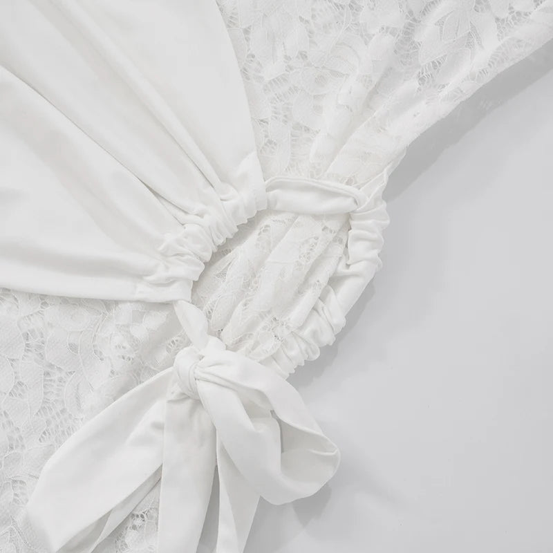 Mesh Patchwork Mini Dress Women Halter Low-Neck Backless Skinny Ruched Knot Ribbon Street Trend Wild Style Vestidos