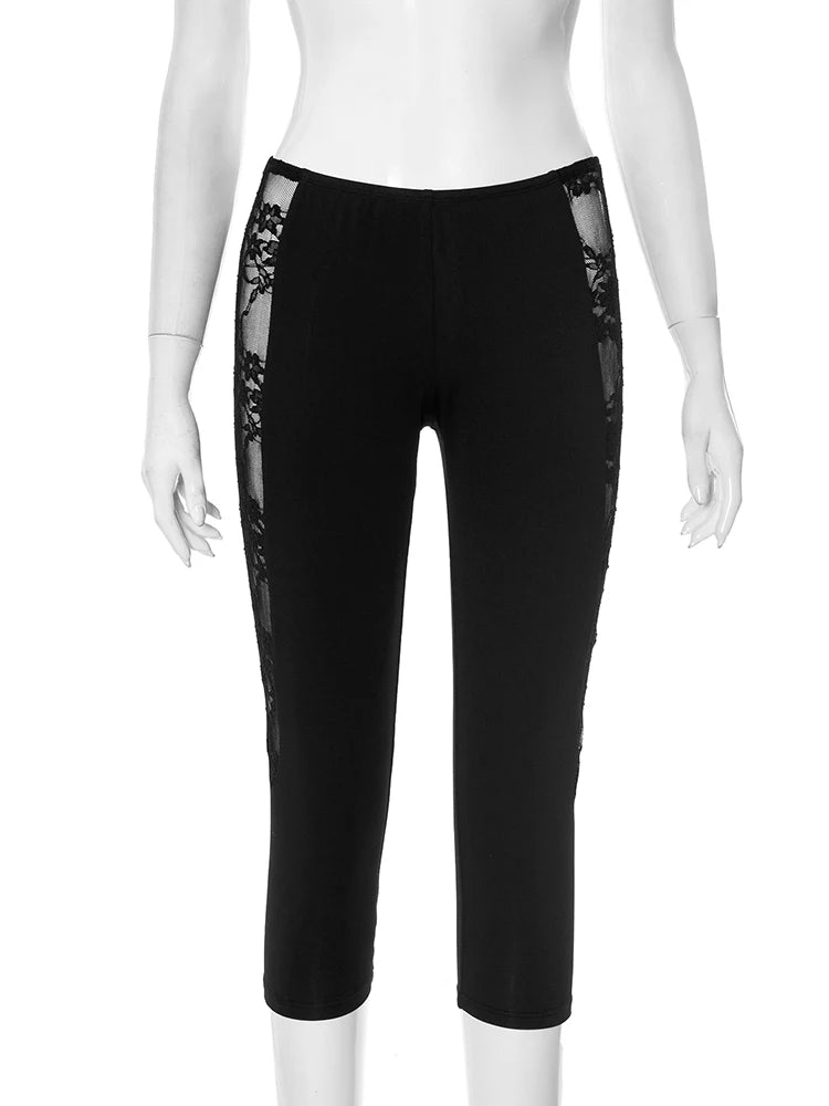 Mesh Patchwork Pants Women Midnight Sexy Elastic Waist Skinny Bottoms Hot Girls Club Party Hipster Coquett Outfits