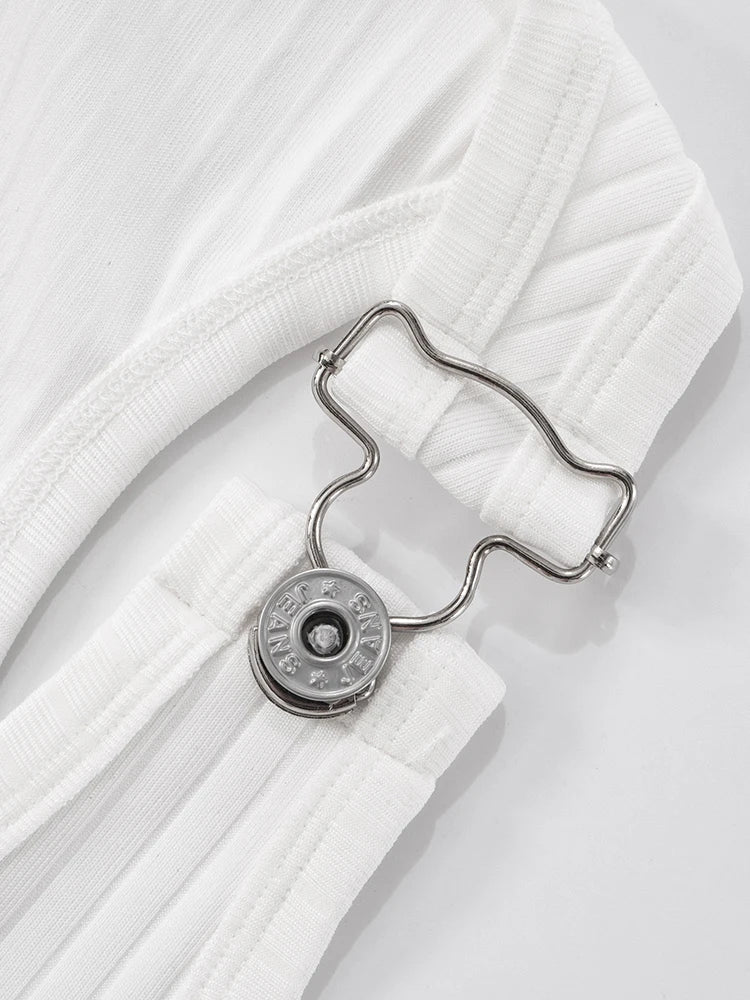 Metal Buckle Decoration 2 Piece Set Women Square Collar Tank Tops+Long Ribbon Shorts Hottie High Street Style Outfits
