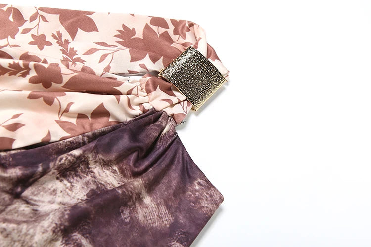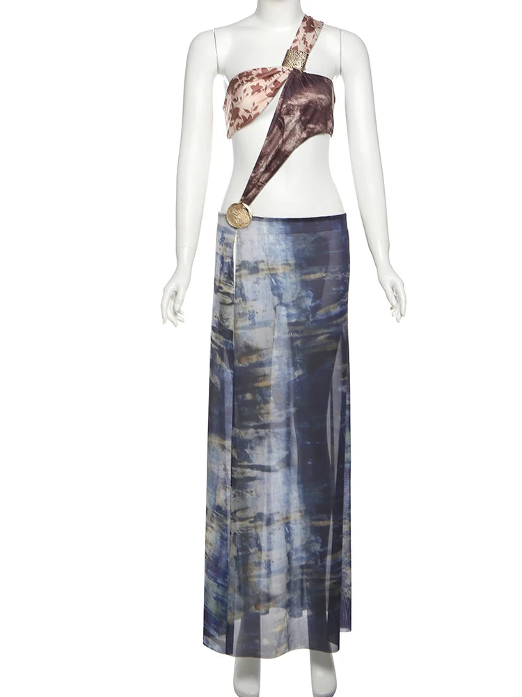 Metal Patchwork Irregular Hollow Dress Women Fashion Print Sexy Backless High Splits Summer Trend Wild Long Bodycon
