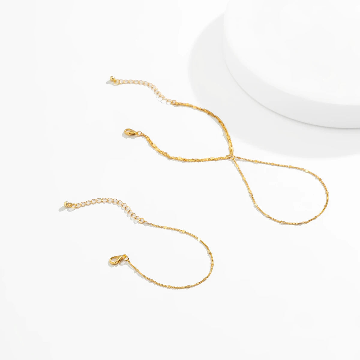 Multilayer Vintage Connected Finger Ring Bracelets for Women Simple Ball Beads Link Chains Hand Harness Bangles Party Jewelry