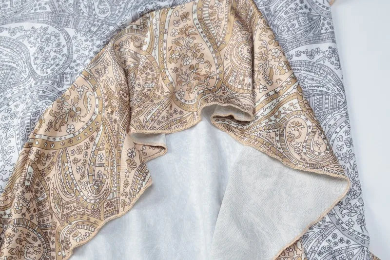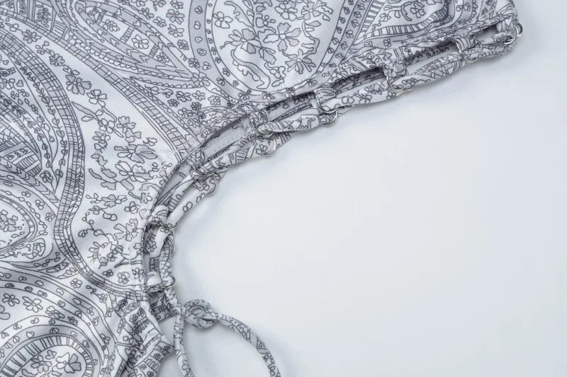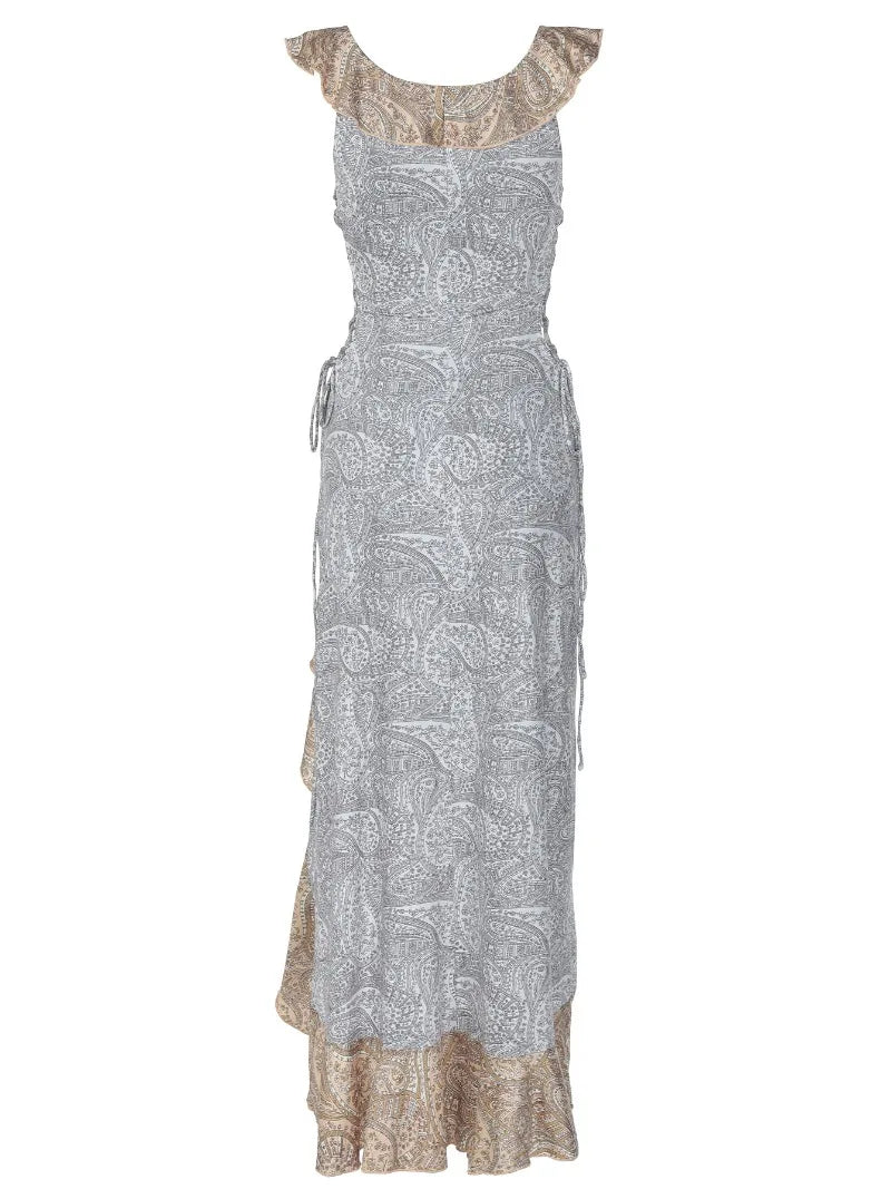 Off The Shoulder Ruffled High Split Dress for Woman Elegant Paisley Print Sleeveless Long Dresses Resort Wear
