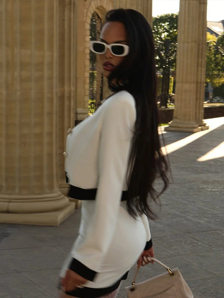 Office 2-Piece Set Women Sexy Single Breasted Coat+Patchwork Split Peach Hip Skirt Matching Slim Elegant Suit Outfits