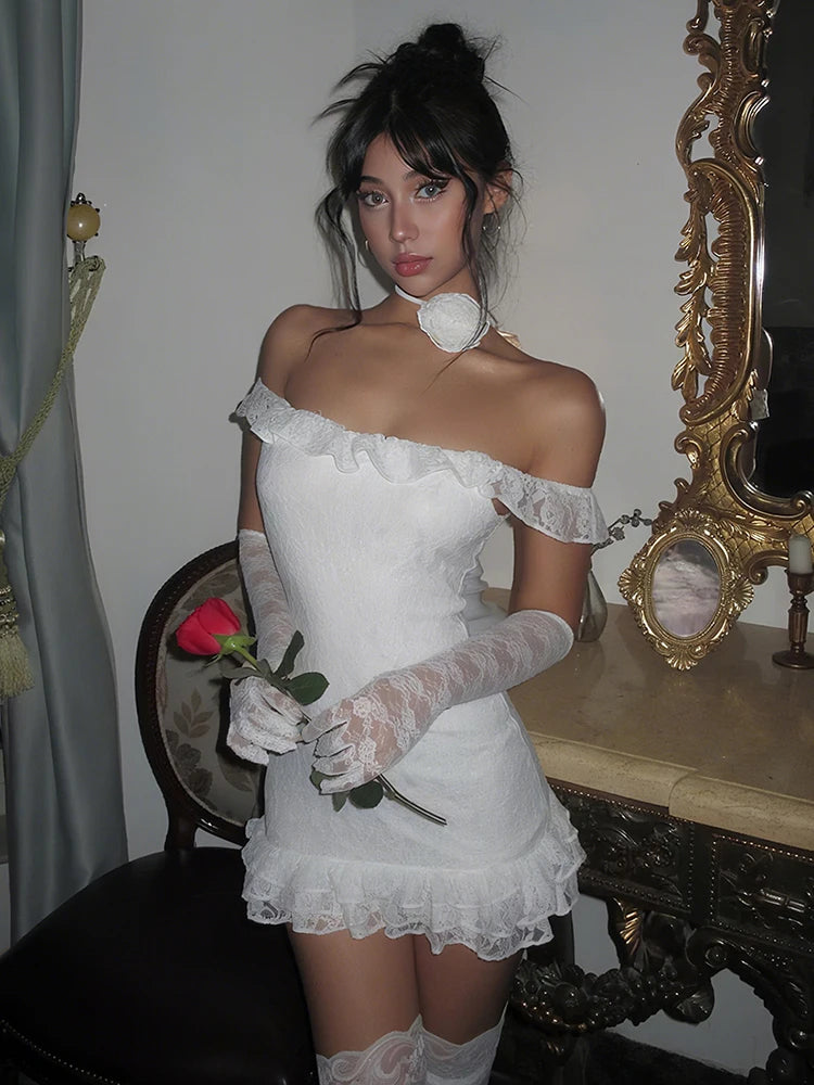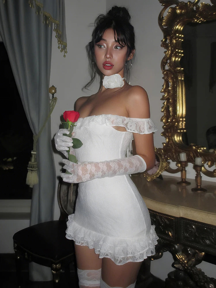 Party Dress Women Jacquard Ruffle Slash Neck Tierred Peach Hip Vestido+Long Gloves Christmas Birthday Sexy Slim Clubwear