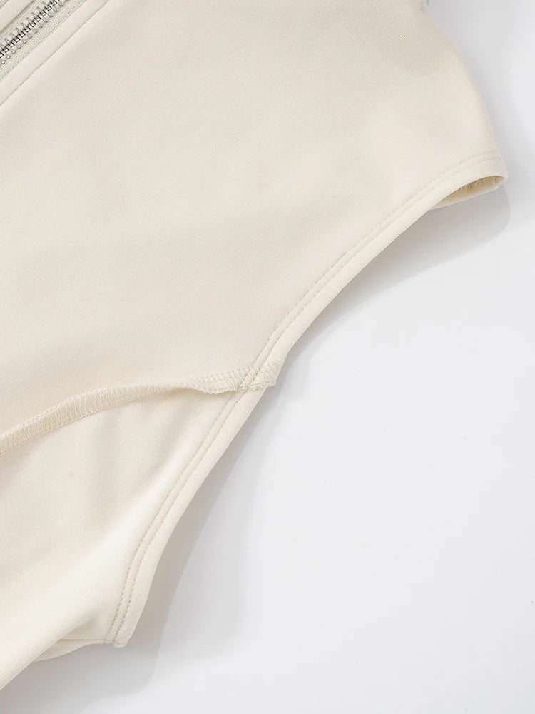 Patchwork 2 Piece Set Women Tracksuit Irregular Tank Top+Peach Hip Zip Shorts Simple Casual Skinny Sporty Streetweas