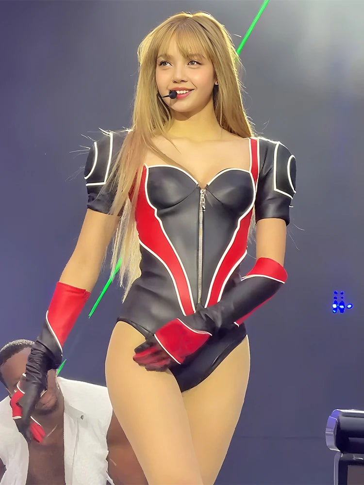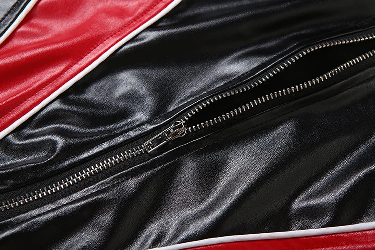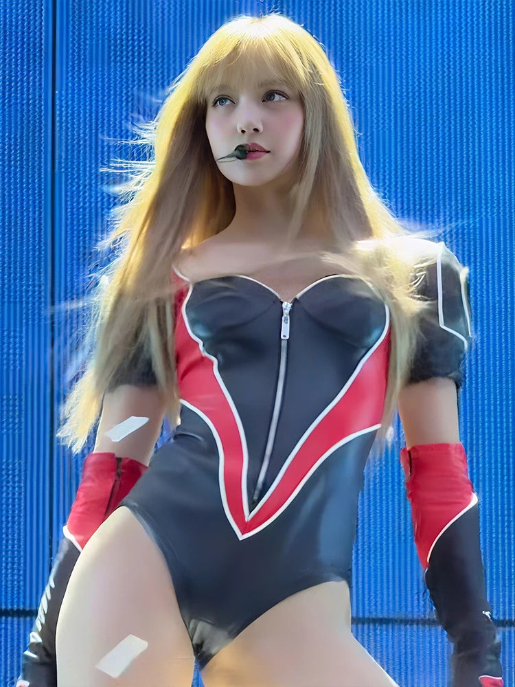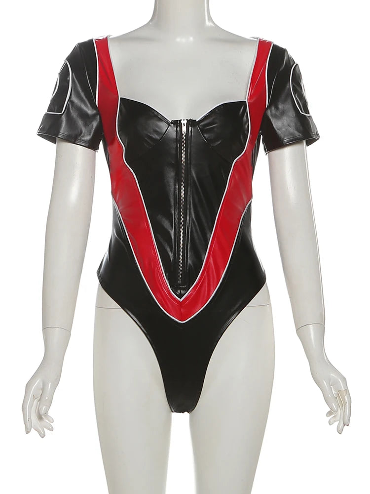 Patchwork Hipster 2Piece Women Faux Leather Long Gloves+Low-Neck Zip Skinny Bodysuits Sexy Music Festival Streetwear