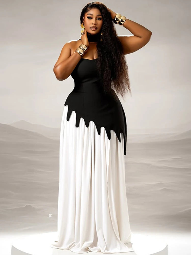 Patchwork Irregular Dress+Scarf Women Summer Elegant Simple Strapless Summer Party Birthday Skinny Slim Maxi Bodycon