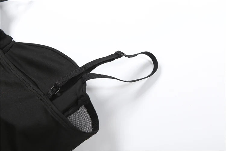 Patchwork Lace Camisole Single Row Buckle Low-Neck See Through Sexy Hottie Street Midnight Fashion Skinny Classic Tops