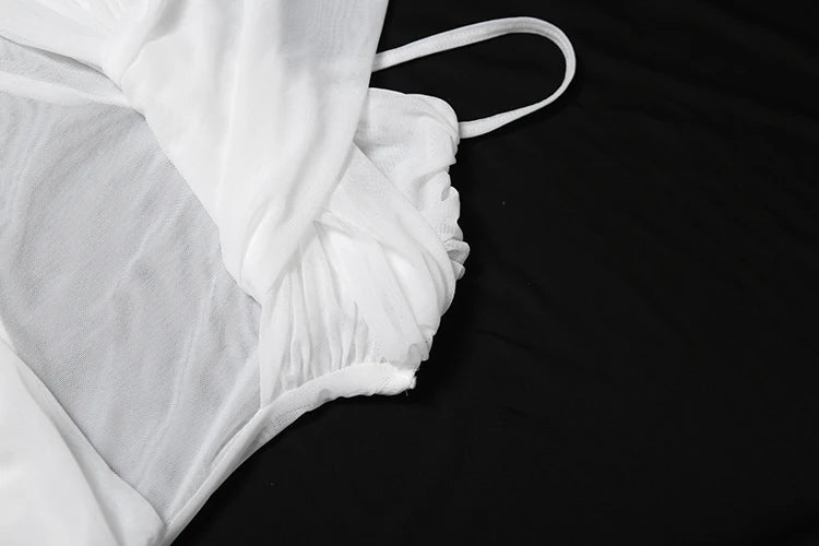 Patchwork Mesh Maxi Dress Women Irregular Double Deck Slits Skinny Ruffles Summer Trend Vacation Beach Party Vestidos