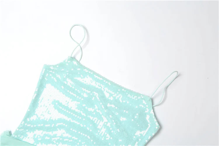 Patchwork Sequins Mini Dress Women Spaghetti Strap Off Shoulder Backless Mesh Hem Midnight Club Party Elegant Outfits