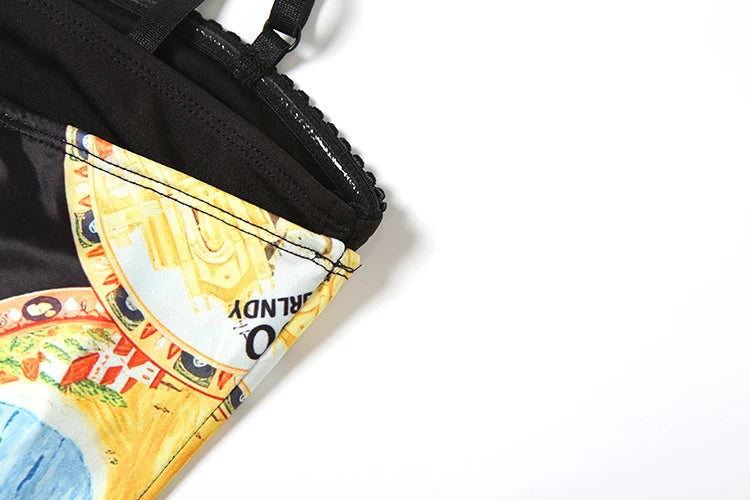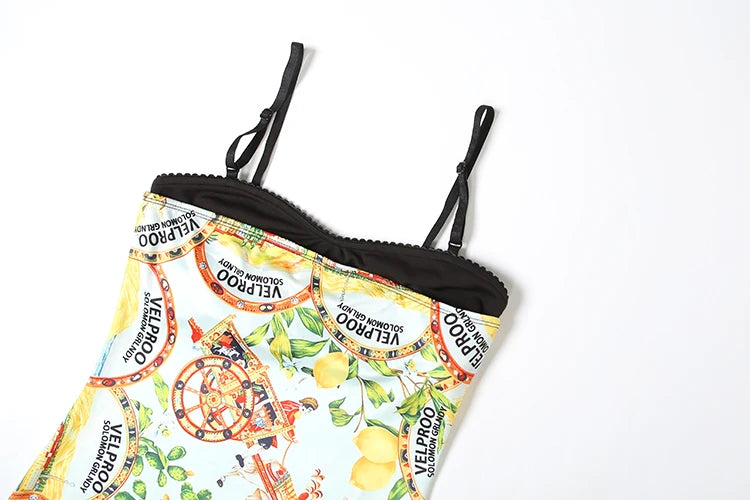 Patchwork Straps Dress Women Y2K Lemon Print Sleeveless Skinny Tight Vacation Beach Party Elegant Banquet Vestidos