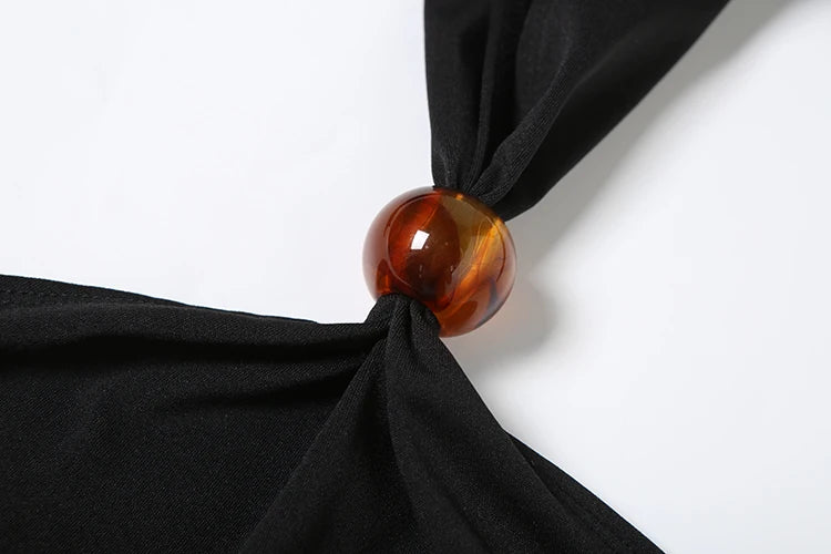 Pearl Buckle Halter Dress Women Y2K Sexy Summer Backless Bandage Simple Classic Stretch Solid Midnight Party Bodycon