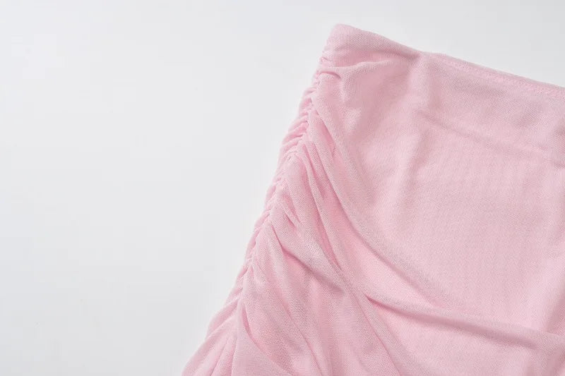 Pink Mesh Tube Top Long Skirt Suit Two Piece Set Woman Elegant Sexy Wedding Guest Outfit