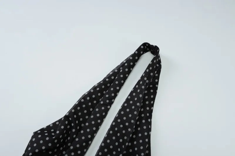 Polka Dot Print Halter Top Y2k 2000s Woman Clothes Sexy V Neck Backless Crop Tops Streetwear