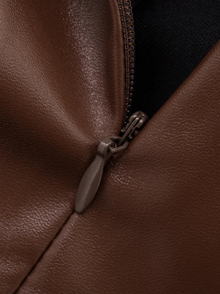 PU 2-Peice Set Women Turn-Down Collar Waistless Shawl+Zip Ribbon Skinny Peach Hip Skirt Matching High Street Sexy Outfits