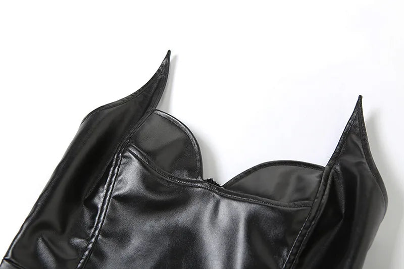 PU Mini Dresses Woman Halloween Party Style Off Shoulder Backless Skinny Stretch Hot Girls Sexy Fashion Classic Bodycon