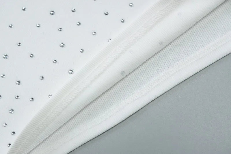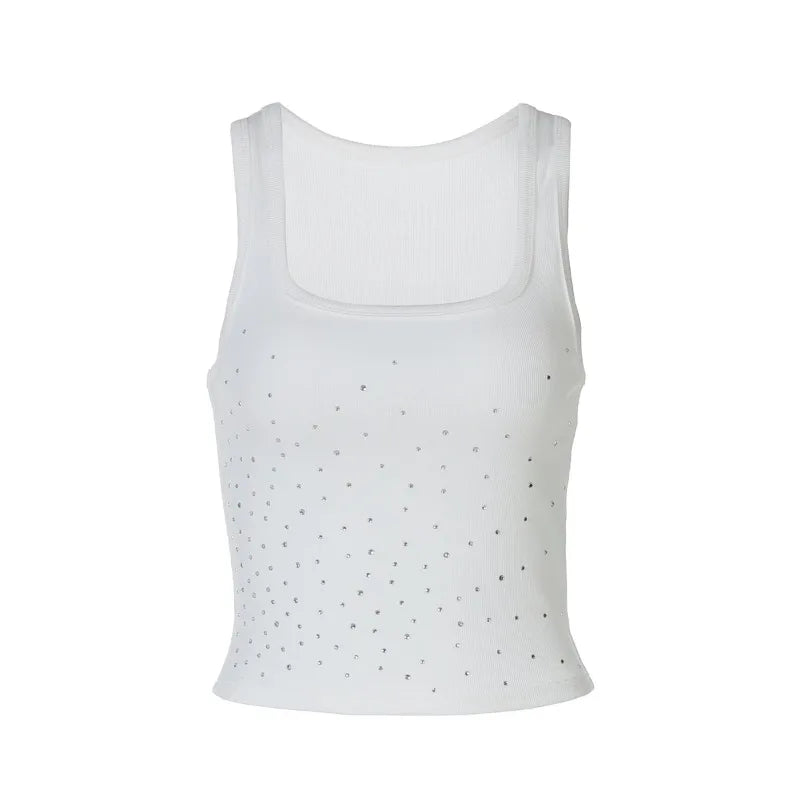 Rhinestone Crop Tops Black White Ribbed Square Neck Bodycon Tank Top Sexy Woman Clothing Summer 2025