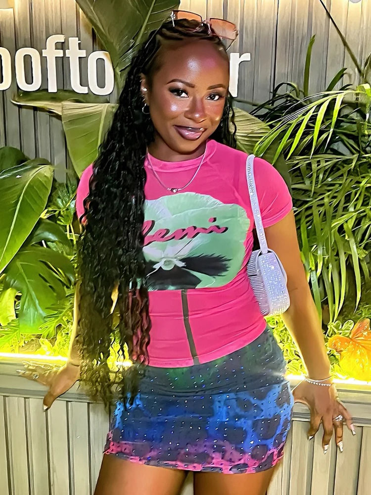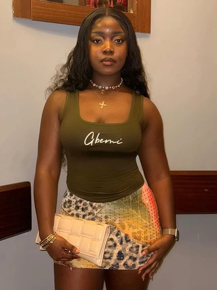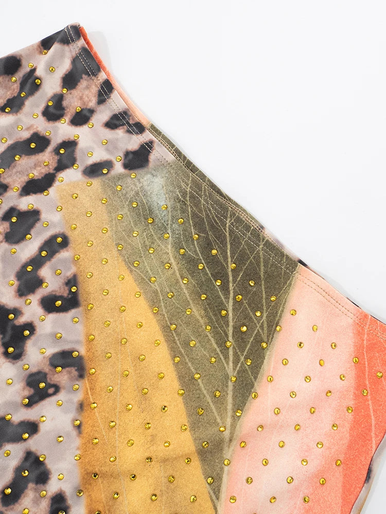 Rhinestones Leopard Print Skirts Women Wild Basic Wild Summer Trend Y2K Hottie Sexy Skinny Party Clubwear Mini Bottom