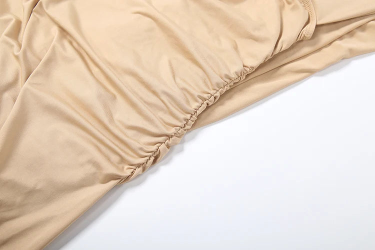 Ribbon Decoration Long Dresses Woman Ruched Elegant Deep V-Neck Sleeveless Backless Street Solid Basic Classic Vestidos