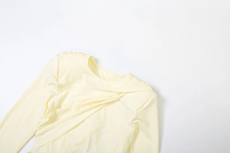 Ruched Kink Design Long Dress Women Autumn New Trend o-Neck Backless Full Sleeve Prom Party Elegant Skinny Vestidos
